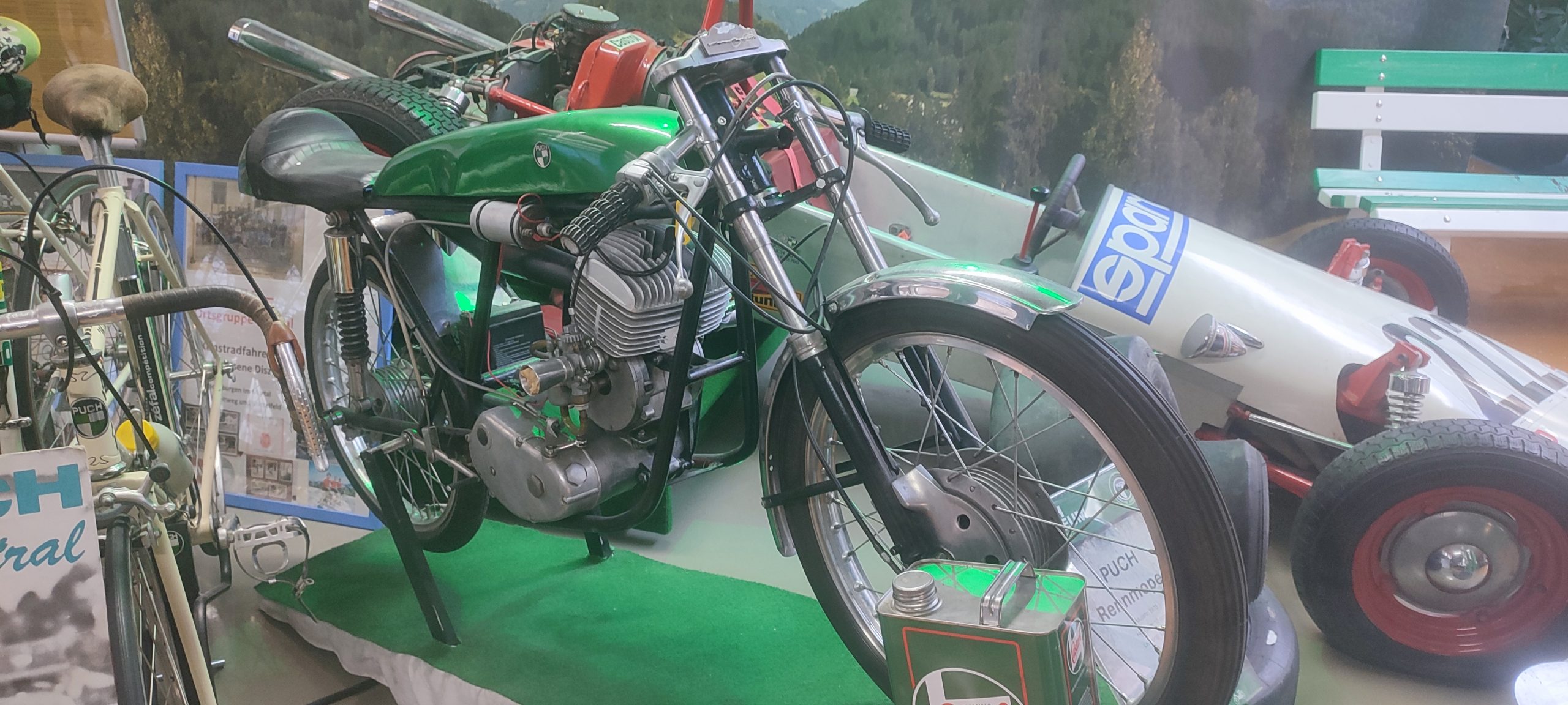 Po končanem ogledu smo se ponovno vkrcali na avtobusa in pot nadaljevali proti Judenburgu, kjer smo zaužili kosilo, ki smo ga imeli s seboj. Po obroku smo obiskali Puchov muzej, v katerem so razstavljeni številni modeli Puchovih mopedov, motociklov in avtomobilov. Nato smo se sprehodili še do judenburškega zvonika, v katerem je urejen planetarij, kjer smo si ogledali videoposnetek o čudežih sveta ter nočno nebo tistega dne.